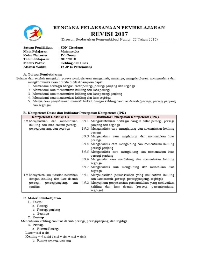 Soal luas dan keliling bangun datar kelas iv sd 1.